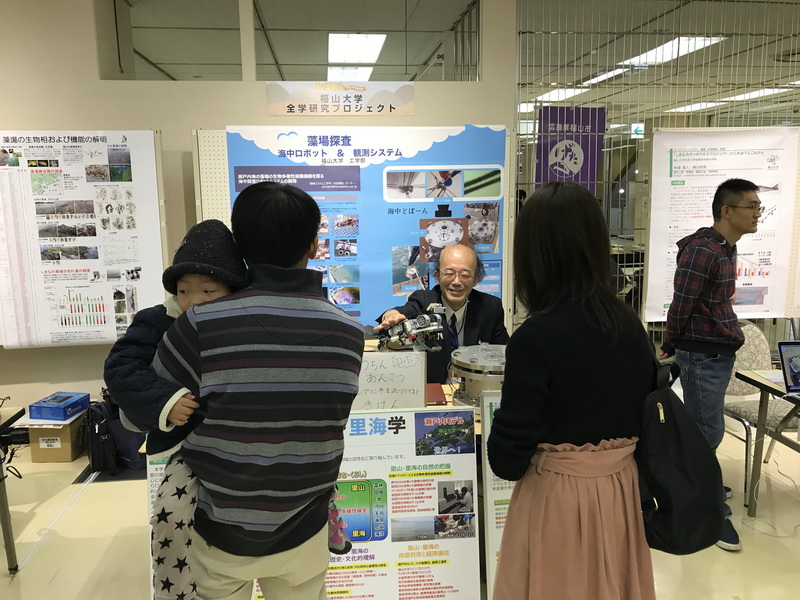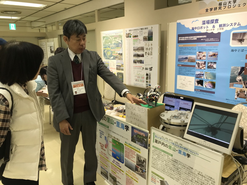 「福山大学全学研究プロジェクト『瀬戸内の里山・里海学』」の出展は、仲嶋教授、田中准教授、内田教授、佐藤准教授、有瀧教授、山岸准教授、水上講師が担当しました。