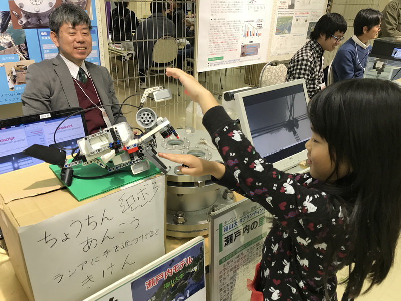 今回の出展は、「福山大学全学研究プロジェクト『瀬戸内の里山・里海学』」、「福山大学工学部スマートシステム学科」及び「福山大学コミュニケーションデザイン研究室」の3つの出展でした。