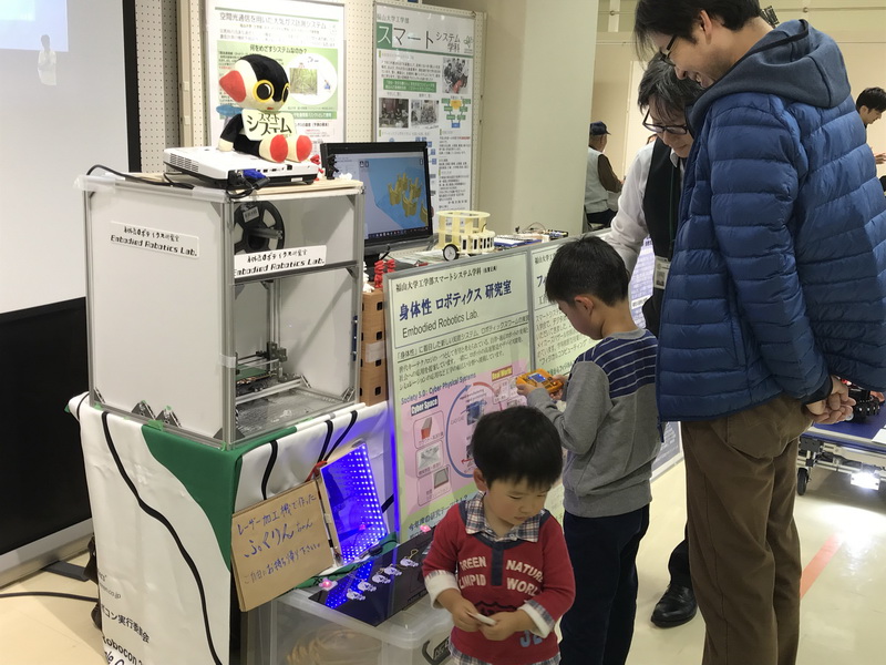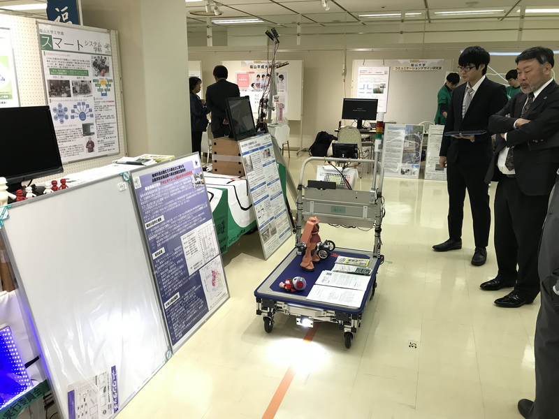 「福山大学工学部スマートシステム学科」は、仲嶋教授、香川教授、関田准教授、沖准教授、伍賀准教授が研究内容の出展を行いました。