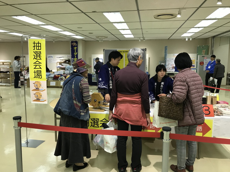 1,000円以上を購入すると抽選会場で抽選できます。1品が3,000円程度する景品もあり、当たれば鐘がなります。