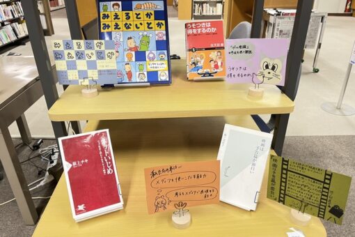 お探しの資料だけではなく、このようなコーナー展示から気になる本・目についた本を選んで読んでみるのも、新たな学びの入口になるのではないでしょうか。みなさんが図書館に来られるのをお待ちしております。