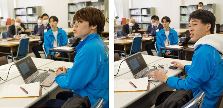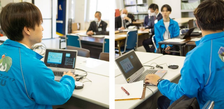 その後、普段の定期活動で行っているサイバーパトロールの様子を実際に見てもらいました。普段は、広島県警サイバー犯罪対策課とZoomで繋がった状態で行っていますが、この日は実際にサイバー犯罪対策課の方も対面で来てくださっていたので、通報に迷うような事案があったときにも、すぐに相談ができるという、とても贅沢な状況でした。