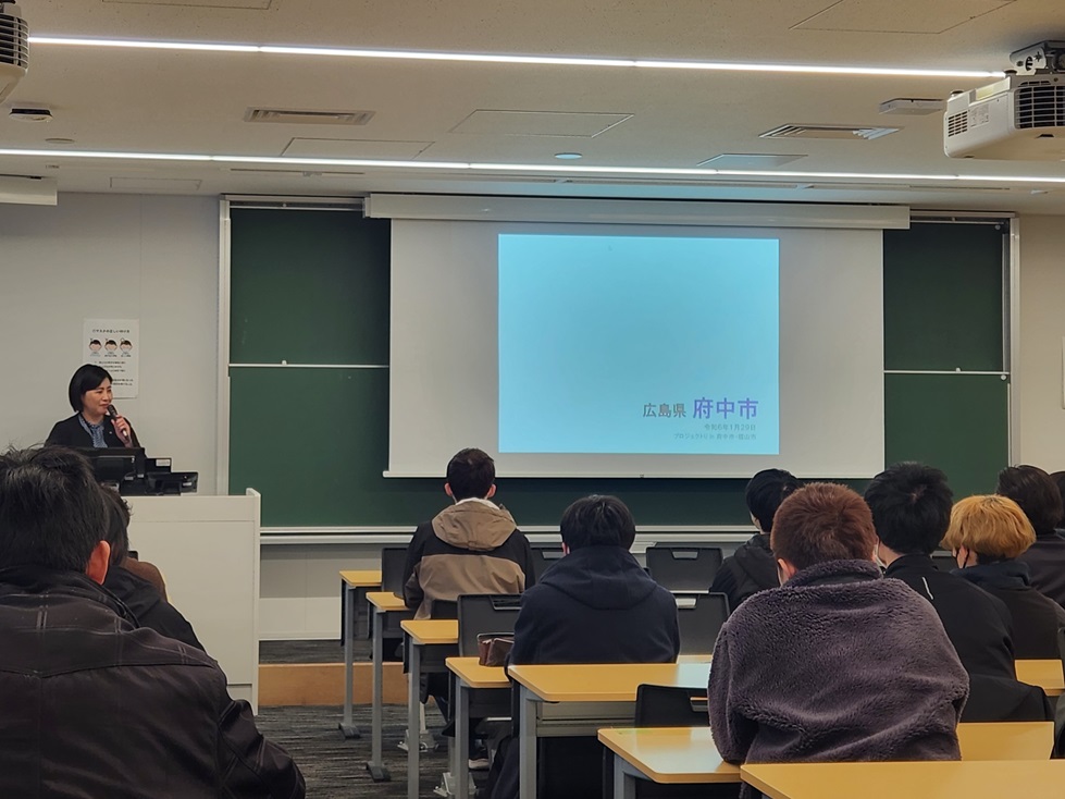 学生からは「府中市には全国的にも有名な上場している工業系の企業があることが分かりました。」や「府中市の産業として色んなことをしていることを知ることができたと思う。実際に行ったことは無いので今度行ってみたいなと思いました。」という府中市に興味を持ったという感想だけでなく「ゼロハンカーレースに興味があるので、府中市の話を聞けて、とても為になった。」「カーレースに福山大学が関わっていることを初めて知った。」というゼロハンカーレースに興味を持った学生も多くいました。他にも、「府中愛に溢れていた。」「良い町づくりに励んでいらっしゃるんだと思った。」という講演者様の熱い思いが伝わった感想もありました。