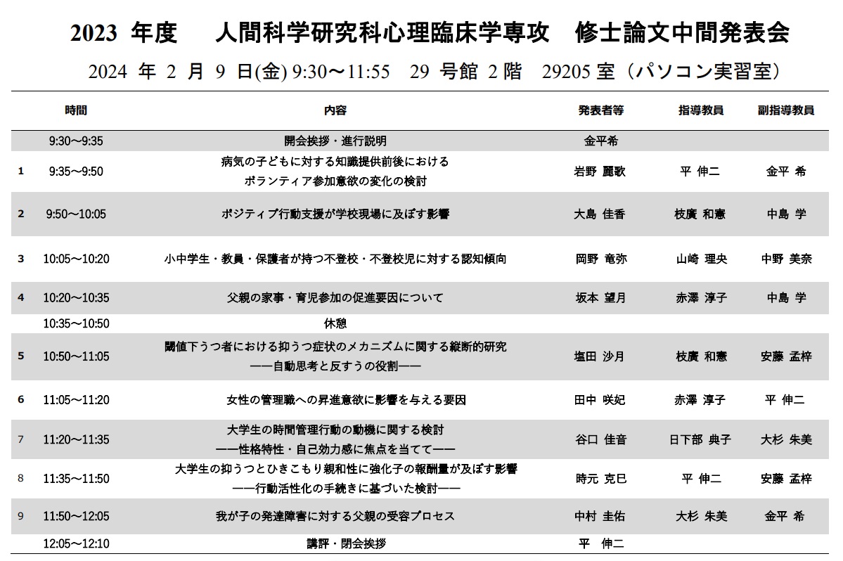 【人間科学研究科】公聴会および中間発表会を実施しました!