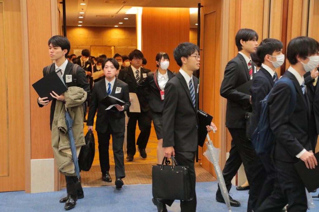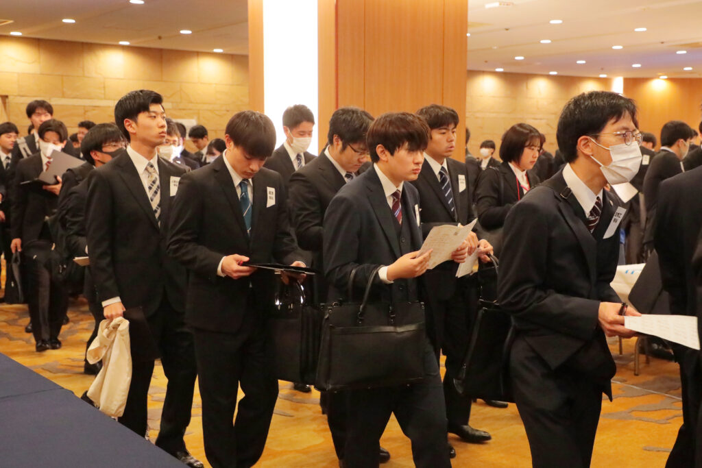 学生たちは開始の合図とともに入場し、お目当ての企業ブースへ急ぎます。
