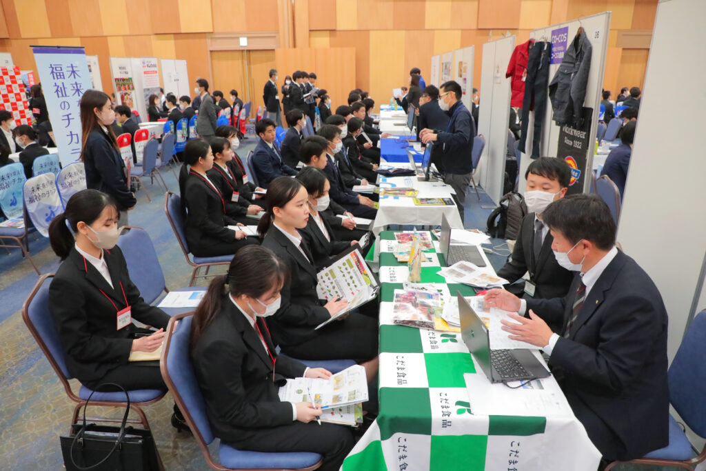 令和6年2月19日・20日の2日間、福山ニューキャッスルホテルにて業界説明会を開催しました。例年、4年次を迎える3年生を対象とした業界説明会をこの時期に実施しており、今年は2daysで行いました。2日間とも午前と午後で参加企業を入れ替え、合計で419社の参加がありました。この参加企業数は、近隣の他大学と比べても格段に多く、最大規模を誇ります。福山大学・福山平成大学の卒業生が活躍する地元福山を中心とする備後に根ざした企業から、全国展開している事業規模の大きな企業まで多岐にわたります。参加学生は、福山大学・福山平成大学の両大学をあわせて延べ1,328名に上りました。学生たちに丁寧な説明をしてくださった企業の皆さまに、心からの感謝の意を表します。