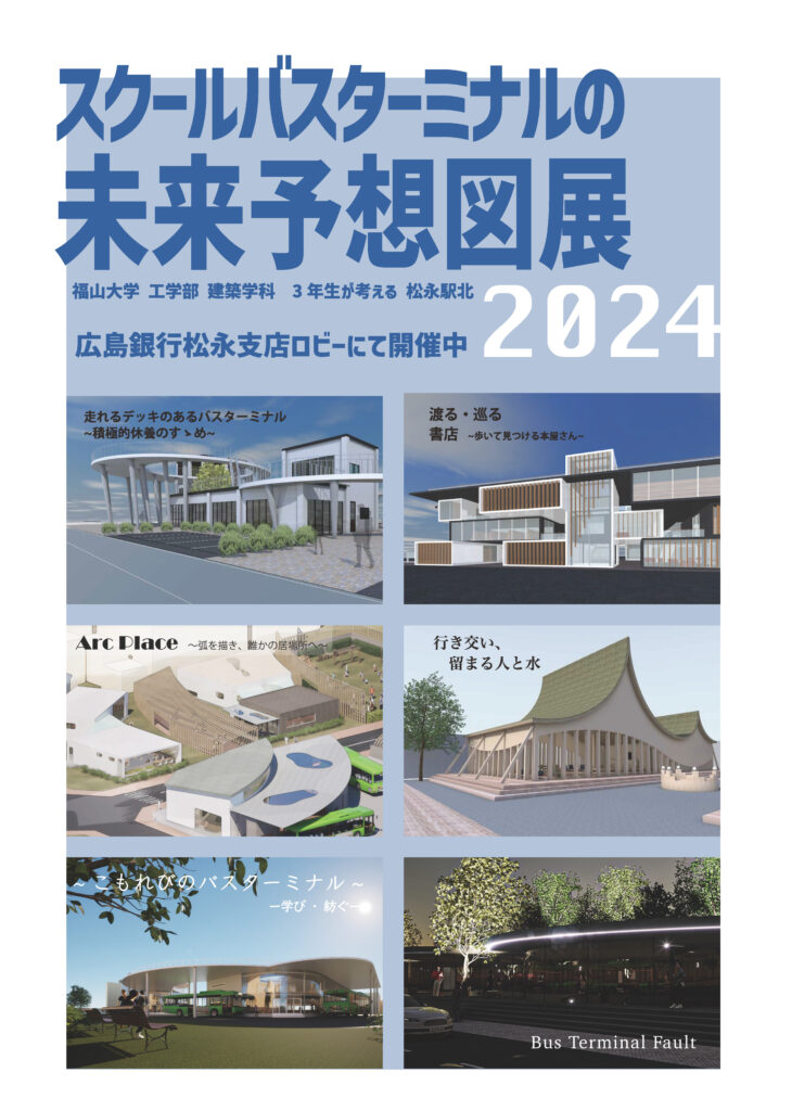 【建築学科】ひろぎん松永支店で「スクールバスターミナルの未来予想図展」開催中!
