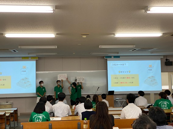 オープンキャンパスでグループワークのルール説明をする八谷さん
