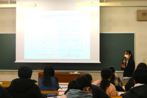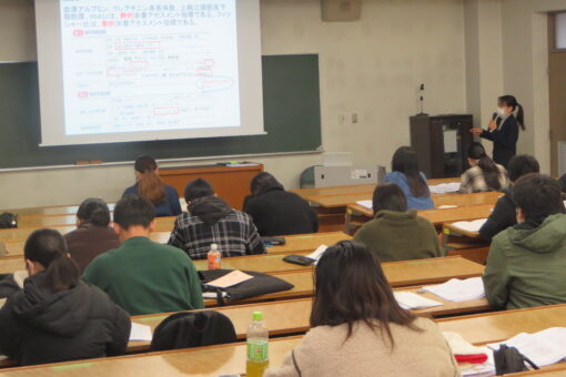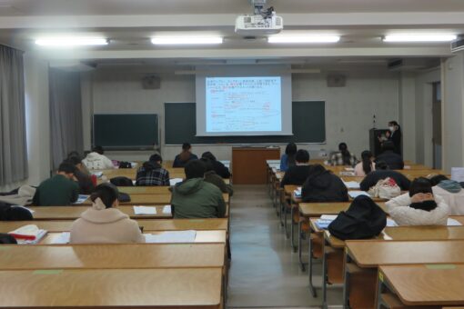 写真は、2月15日(木)~29日(木)に実施した国家試験対策の一環である模擬試験受験後の解説授業及び科目の振り返り対策の様子です。この時は、「応用栄養学」の問題を丁寧に吉田准教授が解説し、重要ポイントの説明を行いました。