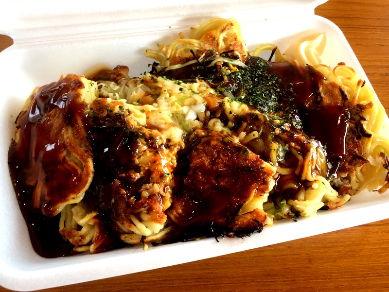 さて、展示で疲れてしまったので休憩です、じばさんフェアの楽しみの一つである地元B級グルメの飲食実演販売ですが、今年も尾道ラーメン、府中焼き、瀬戸田レモン唐揚げなどが、1階の入り口付近で販売されていました。お昼ご飯は、ミンチの入ったお好み焼きの一種の府中焼きを美味しくいただきました。毎年、恒例となりつつあるじばさんフェアですが、来年も参加したいですね!