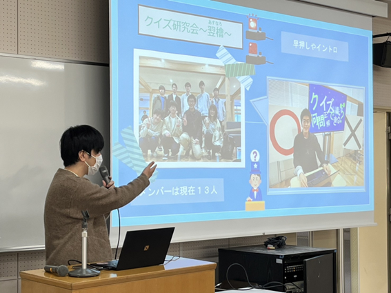 「クイズ研究会~翌檜~」の活動を紹介する池田さん