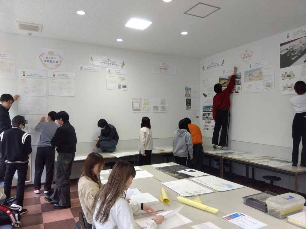 【建築学科】学年製図賞の展示入れ替えを受賞学生たちで行いました!