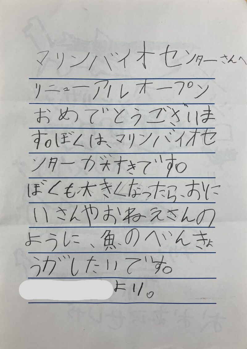 最後にうれしいお便りをご紹介させていただきます。イベント当日にお客様から頂きました。いつも応援ありがとうございます! 感謝の言葉しかありません。また、お兄さん、お姉さんたちにいろいろとお話を聞かせてくださいね🐟