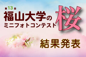 第13回目の開催となる「福山大学の桜」ミニフォトコンテストに、本年も多数のご応募と投票をいただきありがとうございました。 この度、投票審査によって各賞受賞者が決定しました。投票対象61作品のうち、学生と教職員による投票( … 続きを読む 【キャンパス】第13回「福山大学の桜」ミニフォトコンテスト結果発表!