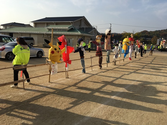 12月2日(日)に福山大学のご近所の東村小学校で第73回東村町かかし祭りが開催されました。工学部スマートシステム学科(フェイスブックはこちら)からは、田中准教授と研究室のゼミ生の皆さんがイベントに参加しました。この報告が田中准教授より届いておりますので、スマートシステム学科ブログメンバーの伍賀が紹介します。