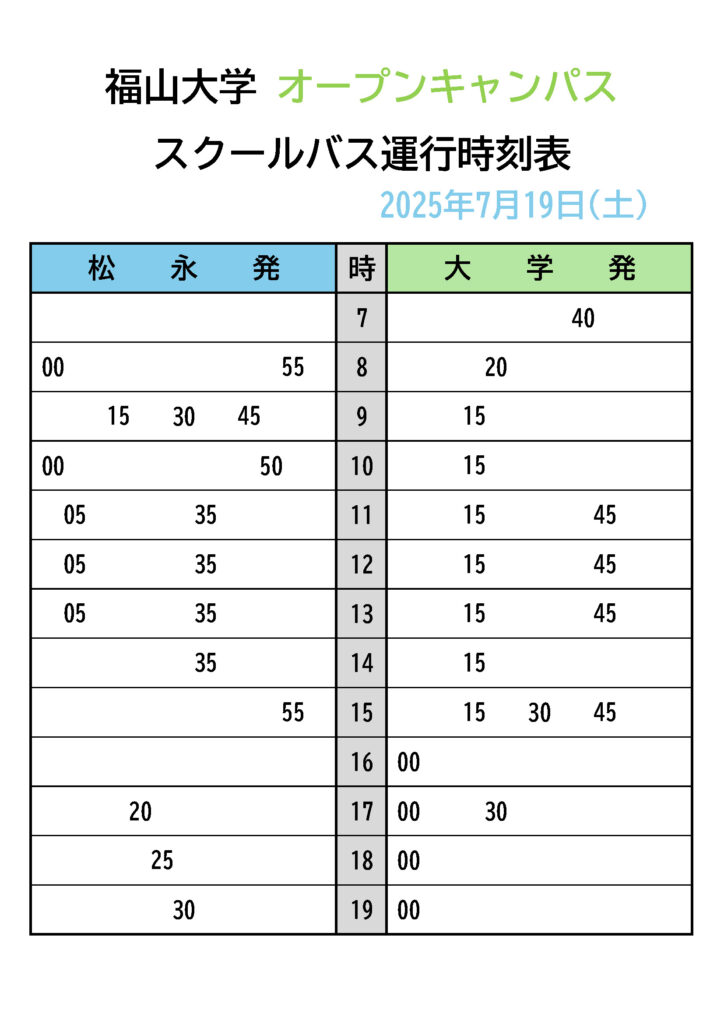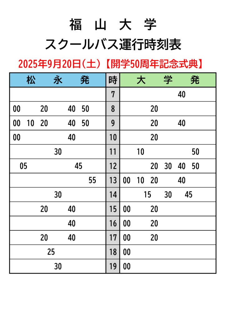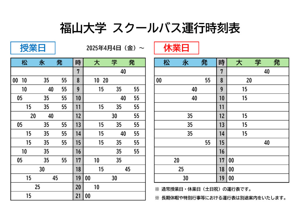 ・【 令和7年度 (後期) スクールバス時刻表 】