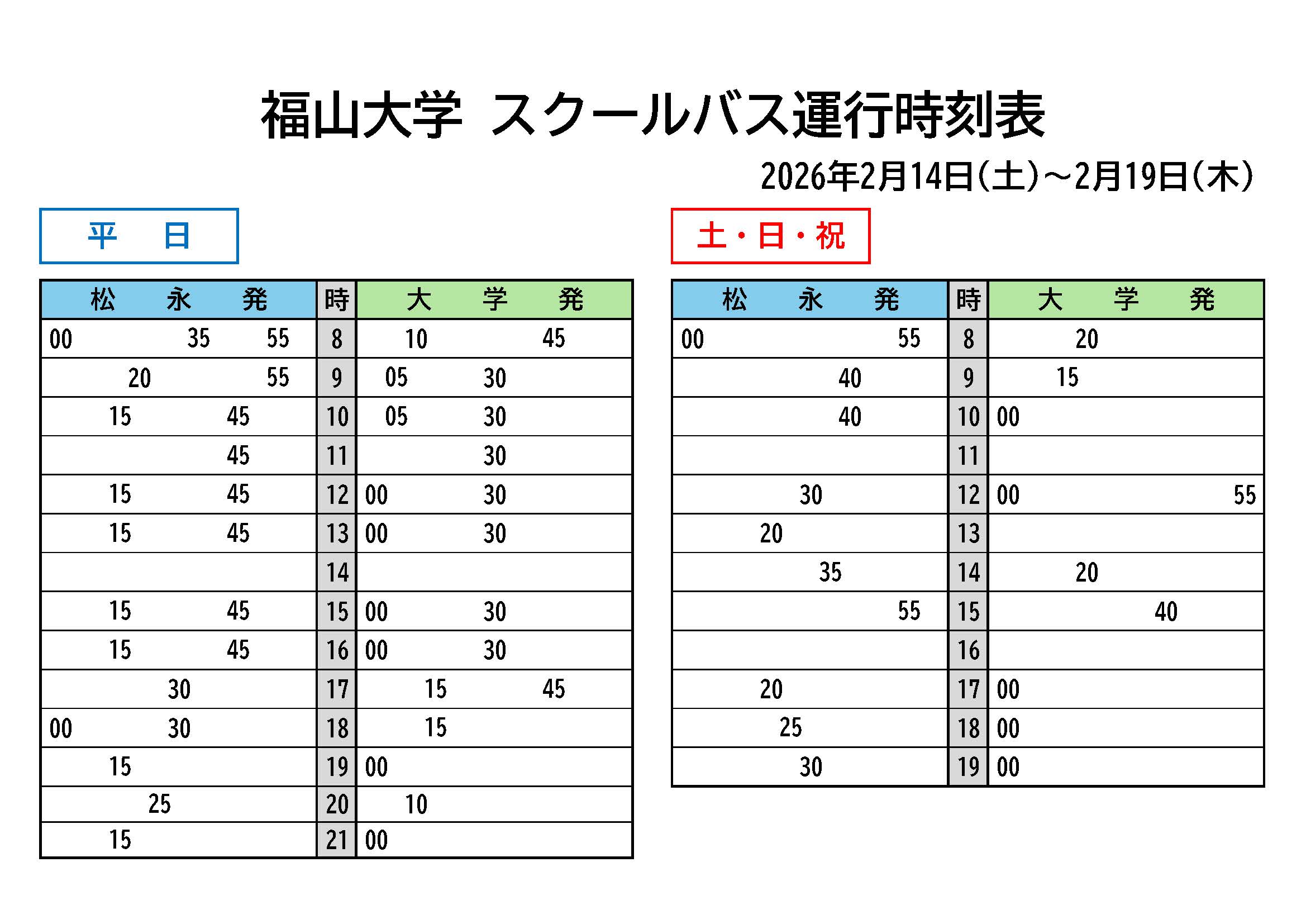 2026年2月21日(土)~ 2026年2月28日(土) 時刻表はコチラ