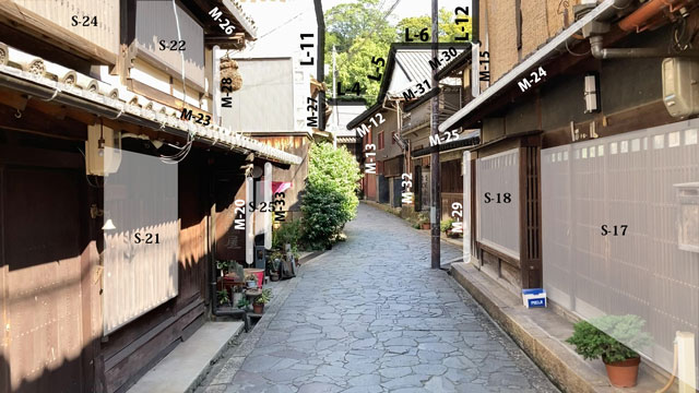町並みを散策するときの魅力は何でしょうか?美味しい食べ物やかわいい土産物を探すことなどたくさんありますが、そのひとつに歩きながら移り変わっていく風景の変化を楽しむことが挙げられます。「人」の移動に伴って目に映る風景は連続的に変わります。このような変化を人の「体験」と捉え、街路ごとに楽譜のように表記することで景観の特徴を把握し、景観整備に役立てる方法を開発しています。全国各地の町並みを、この方法で表記してみよう!と計画しています。