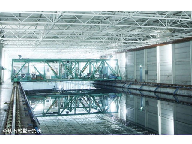 長さ200mの商用水槽の例です。画像提供:川重マリンエンジニアリング㈱ 明石船型研究所