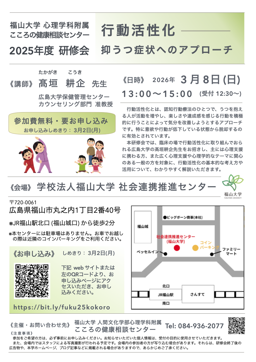 福山大学心理学科附属こころの健康相談センター2025年度研修会