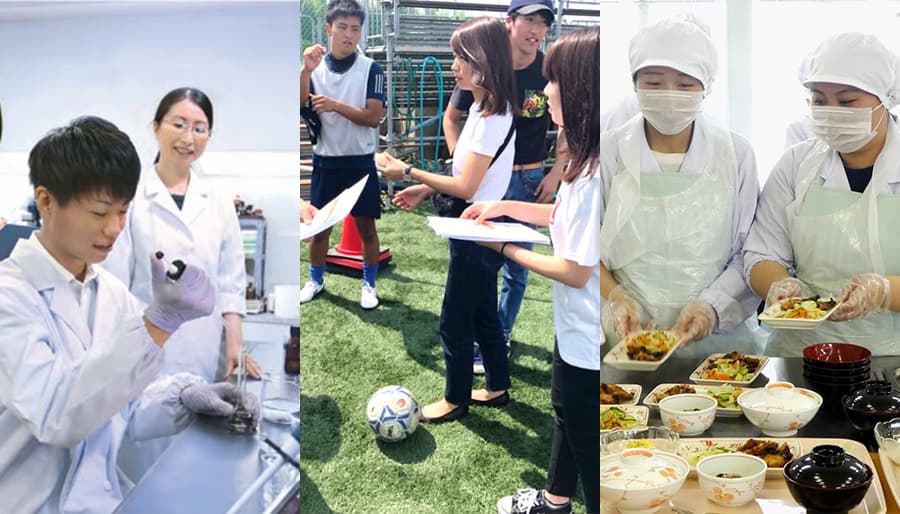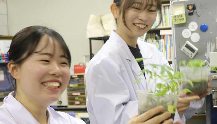 生命工学部では、生物や生態系の仕組みを学ぶ基礎から、食と健康、環境への応用まで、幅広い視点で特色ある研究に取り組んでいます。自分の興味に合わせて研究室を選び、希望のキャリアパスに進むことができます。