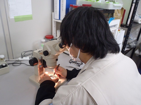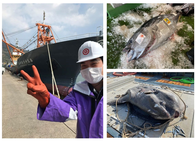 共和水産は鳥取県の境港にあり、まき網漁船などでイワシやマグロなどを漁獲している会社です。仕事内容は、市場での魚の水揚げの立ち会いや出荷作業などです。祖父が漁師だったこともあり、漁業に関わる仕事に就きたいと考え、この仕事を選びました。大学で学んだ魚に関する基礎知識は仕事でも役に立っています。4年次生の時には、因島キャンパスで釣りをしたり(もちろん研究の一環です)、キャッチボールをして(息抜きと体力作りです)、過ごしたことは良い思い出です。