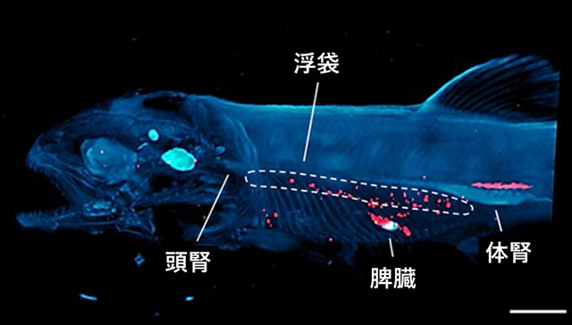 魚類をワクチン液に浸すと体表や鰓の粘膜組織から、さらには水と一緒に飲み込んで消化管の粘膜組織からワクチンが取り込まれます。数時間後には血液を介して免疫応答を行う腎臓や脾臓に集積します。そこでは抗原提示細胞やT細胞、B細胞などが待ち構えていて、分解されたワクチン成分に反応する抗体を産生します。ワクチンの運搬ルートによって活性化する免疫応答の種類が異なるため、ワクチンの投与方法は非常に重要です。より効果的なワクチンの開発を目指して研究を行っています。