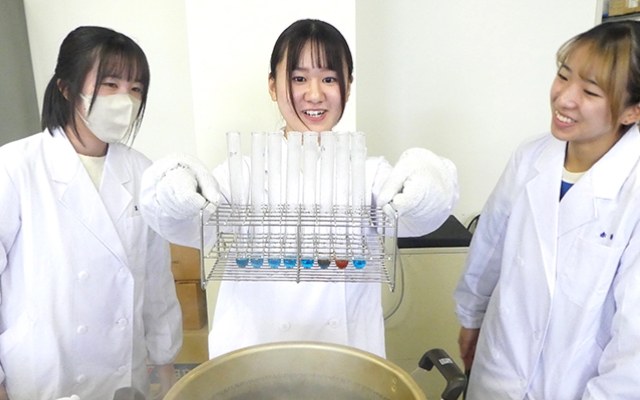 文系高校出身でも大丈夫、基礎から化学・生化学を学びます。講義と豊富な実験から、食べ物の代謝・栄養などを学びます。