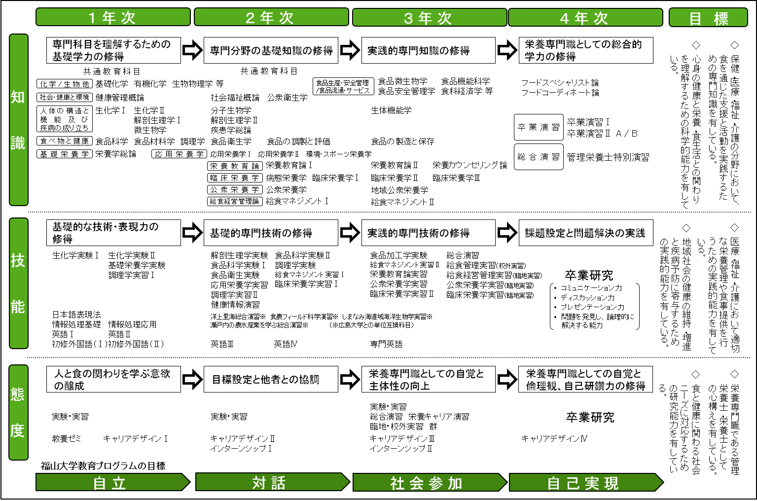 管理栄養士に必要な食品・調理・栄養などの専門知識と実践力を、