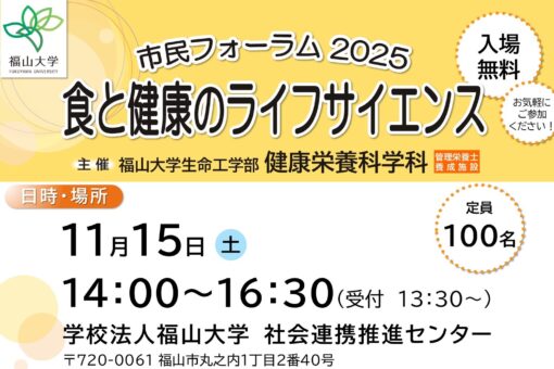 福山市、尾道市、三原市など近隣の住民や高校生を対象に「健康料理教室」を開催。学生はスタッフとして活躍。地域の健康をサポートします。