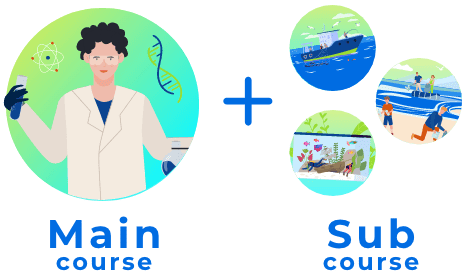 自分の進路や興味に合わせて、所属コースの科目をメインに、他コース科目を“トッピング”して、自分に合ったカリキュラムを組み立てましょう。