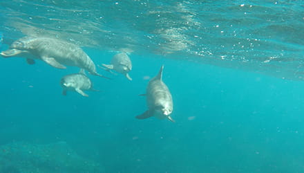 イルカなどの海洋哺乳類の「くらし」と「こころ」について研究しています。水族館で行動観察や認知実験を行い、なぜそのような行動をするのか、周りの個体や環境をどのように認識しているのかを調べています。また、瀬戸内海に生息するスナメリの保全のため、船を使って生息域などの生態調査も行っています。