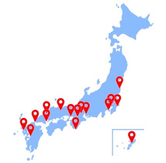 仙台うみの杜水族館、ふくしま海洋科学館、鴨川シーワールド、すみだ水族館、サンシャイン水族館、八景島シーパラダイス、アクアパーク品川、鳥羽水族館、京都水族館、琵琶湖博物館、ニフレル、串本海中公園、アトア、四国水族館、宮島水族館、しまね海洋館、宍道湖自然館、カブトガニ博物館、海の中道海洋生態科学館、九十九島水族館、長崎ペンギン水族館、美ら海水族館 など