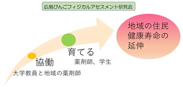 薬剤師が地域住民のセルフメディケーションや在宅医療、薬物療法に携わる上で有効な情報収集の手段となるアセスメントの技能の修得や得られたデータを有効活用する手法を確立し、薬剤師の資質向上と医療や地域における薬剤師による貢献度を高めるための研究活動および教育活動をおこなうことを目的とした研究会です。