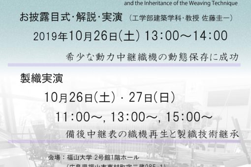 【建築学科】三蔵祭:「備後中継表の動力中継織機の展示・実演」などなど