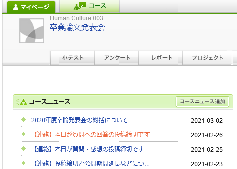 【人間文化学科】2020年度卒論発表会―対話を通して考える1週間