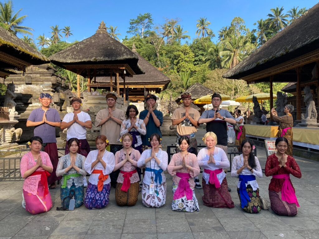 午前中は、英語の授業に参加し、午後はバリ島の各地に赴きました。研修期間中に訪れたティルタンプル寺院、ウルワツ寺院、パンリプラン村では、バリ島の伝統文化に触れることができました。ただ美しい観光地を巡るだけではなく、マハサラスワティ大学の学生から、生活習慣やお祈りの作法、日々大切にしていることなどを学びました。