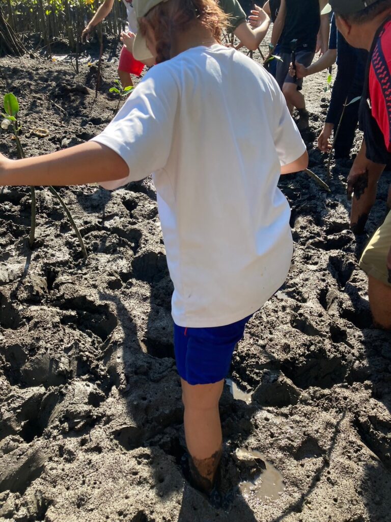 また、環境問題への取り組みとして、マングローブの植樹やウミガメの放流にも携わることができました。マングローブは地球全体の環境にとても大切な役割を果たしています。バリ島の漁場確保のための開発によって失われてしまったマングローブを増やす試みが行われています。