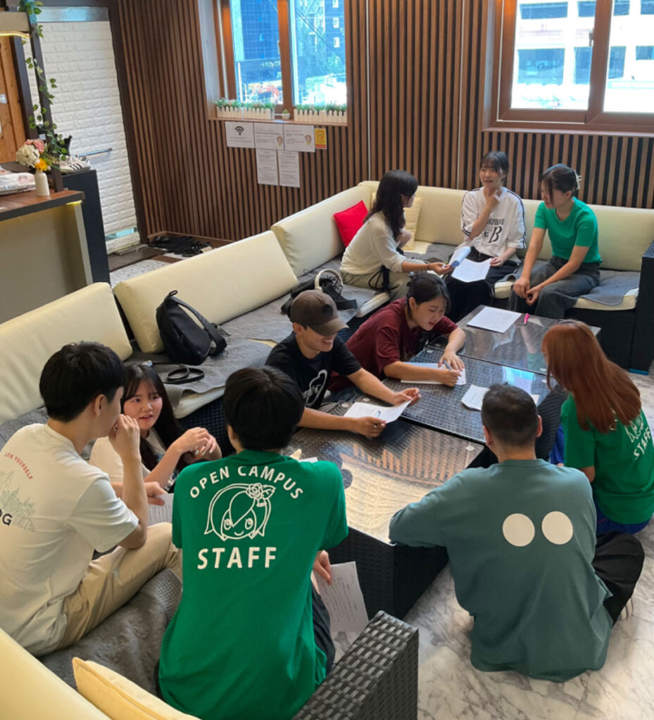 今回の韓国研修では、参加者の全員が広々としたシェアハウスで共同生活を行い、日々の生活を共にしながら、韓国の文化や習慣を深く理解する機会となりました。シェアハウスには設備が整ったキッチンと広いリビングルームがあり、みんなで料理を作ったり、団欒の時間を楽しんだりできました。生活の一環として、参加者はグループに分かれ、それぞれが交替で夕食を担当しました。グループごとにメニューを考え、食材を購入し、料理を作るというプロセスは協力とコミュニケーションの重要性を学ぶ貴重な経験となりました。