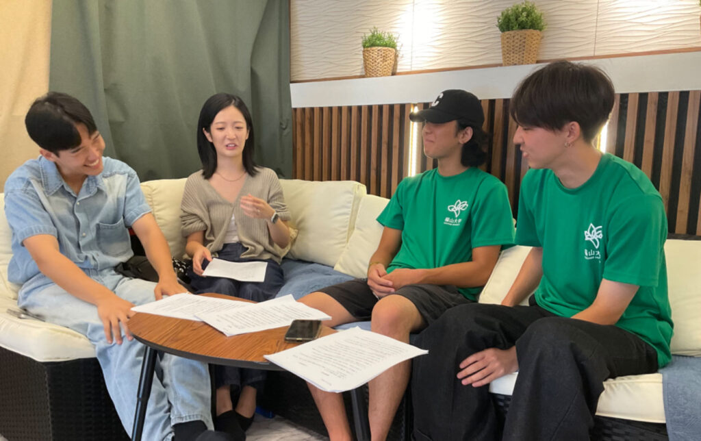 ボランティア活動では、7つのグループに分かれて、福山大学の学生がリードして多くの質問を投げかけ、韓国人学習者が日本語で回答する形式で行いました。シェアハウスで実施され、大変賑やかなムードの中、みんなが喜び合いながら楽しく日本語を学ぶことができました。