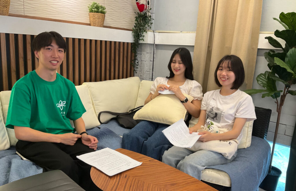 もう一つのボランティア活動は、韓国の日本語学習者に日本語を教えるものでした。今年設立10周年を迎えた「そこそこカフェ、釜山韓日交流ネットワーク」というボランティア団体と交流活動を行いました。参加者は大学一年生から大学院生、さらには社会人など、幅広い層の若者たちが集まりました。また、日本語のレベルも様々で、全くの初級者から上級レベルの学習者までが混在していました。交流活動はボランティアとお食事懇親会の二つのステップで進行されました。