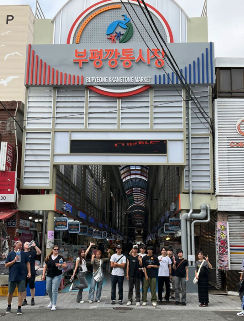 私は韓国に行くのが初めてで、少し不安もありましたが、現地では一緒に行ったみんなのお蔭で常に楽しむことができました。韓国の学生さんと交流する機会があったのですが、彼らは日本語がとても上手で尊敬の気持ちでいっぱいです。言葉の壁が高いなと感じたので、私も韓国語を勉強して現地の人と話せるようになりたいと思いました。また、韓国のスーパーは小規模な八百屋さんのようなところから業務スーパーのような大型店舗までありました。中でもeマートは規模が大きく、大量買いにおすすめです。普通の旅行では味わうことのできない貴重な体験ができて、とてもいい思い出になりました。最後に、補助をしていただいた後援会、経済学部同窓会、大学関係者の皆様には感謝申し上げます。