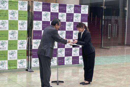 1月29日水曜日、本学大学会館において、在校生の学長賞授与式が行われ、学長賞4名と1団体、奨励賞に1名が表彰されました。FUKUDAI Magでもすでに紹介しましたが、新谷さんは、第10回全日本大学ストリートダンス選手権中国大会優勝にてソロ部門優勝、所属するスタジオレディバグのメンバーの一員として、World of Danceの日本予選を無事通過し、ロサンゼルスで来年夏に行われるWorld of Dance世界大会への出場権を得るという快挙を成し遂げました。来夏ロサンゼルスでの世界大会での活躍を期待しています。