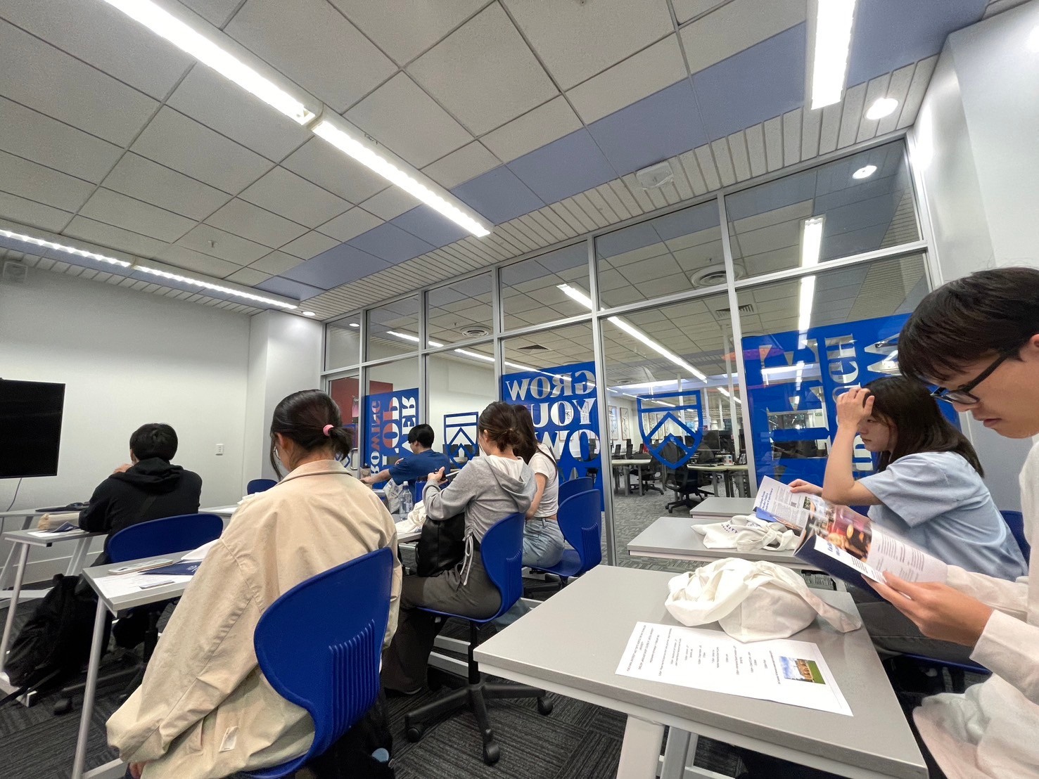 ・英語を聞き取るリスニングが大変だった。日本では書くことが多かったけど、こちらでは人前で話すことや、グループでのディスカッションが多い。(Hさん)