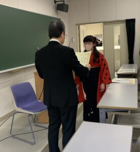全校での式典の後、学科に分かれての卒業証書授与が行われました。