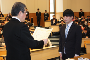 式典の後、学部・学科ごとに分かれて学位記の授与が行われました。