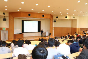 経済学部税務会計学科の『備後経済論』は経済学部生が、地元企業さらに備後経済に対する理解を深めるとともに、就職活動の参考にすることを目的として、地元企業の経営者等を講師に招き、企業立ち上げの苦心談、経営理念、若い世代へのメッセージ等を熱く語りかけてもらう形式の講義です。