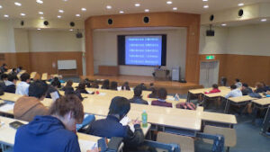 講義の進行は以前と若干違って、60分の講義が終わった後、学生に企業経営者をより身近に感じてもらい、また企業経営者との交流を深められるよう、質疑応答の時間を設けました。
