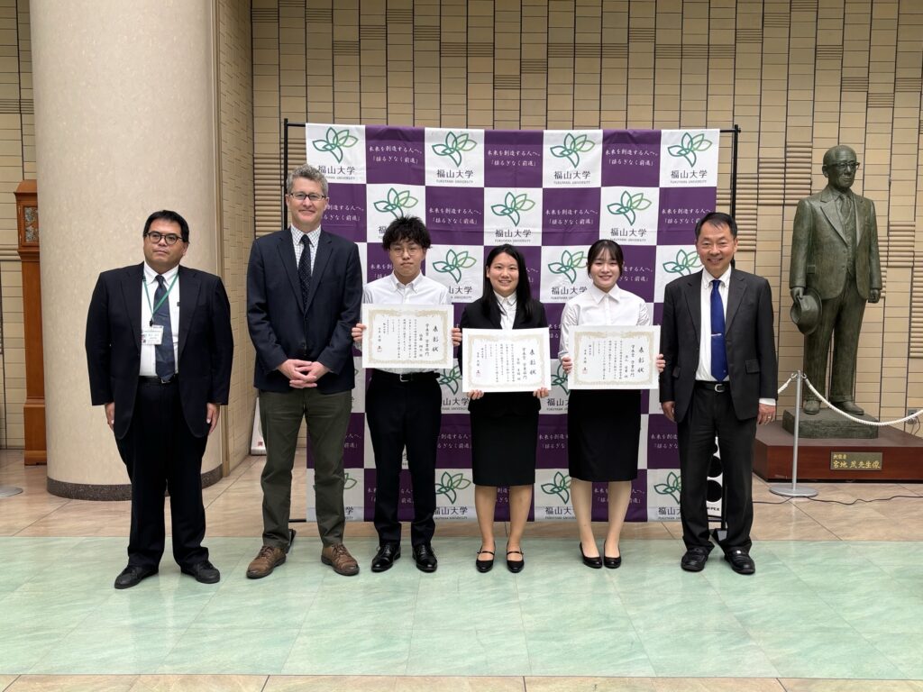3名の皆さん、学長賞おめでとうございます。みなさんの努力に心より敬意を表します。溝入さんは昨年度に続き、2年連続の受賞となりました。これからも引き続き頑張ってください。