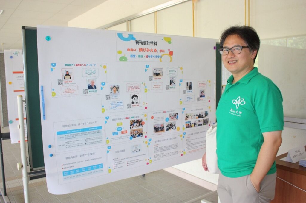「経営と会計についての実務的な知識の習得、資格が取得でき、金融機関や地元の企業に最も近い学科」であることを説明しました。